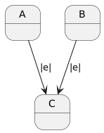 UML implements this concept visually. Here we see $A and $B have identical transitions to $C when responding to |e|: