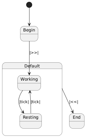Both $Working and $Resting factor out the code to handle the stop system message << to the parent $Default state. This event handler simply transitions the system to the $End state.
