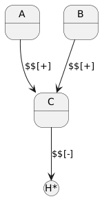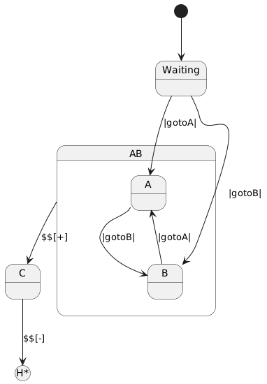 In the sprit of staying DRY let’s refactor out the common transition shared by $A and $B into a parent state $AB: