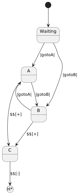 |gotoC| print("|gotoC| in $AB") $$[+] -> "$$[+]" $C ^